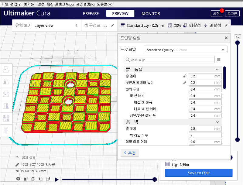 설정후 슬라이스를 실행합니다.