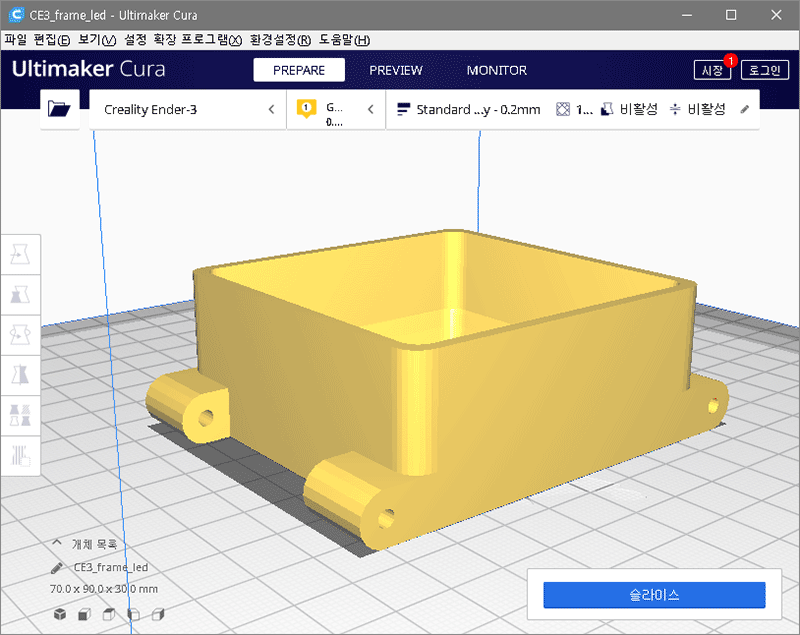 CURA에서 프린팅을 어떻게 진행할지 설정한후