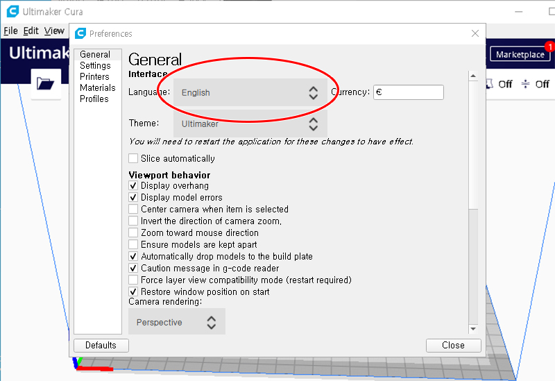 때문에, 초보자라면 CURA를 한글로 설정하는 것이 좋습니다.
